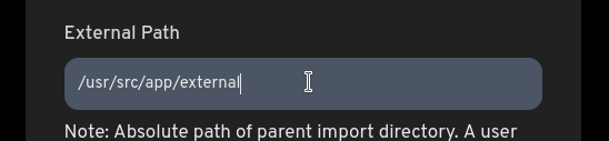 • Fill in the External Path field with /usr/src/app/external